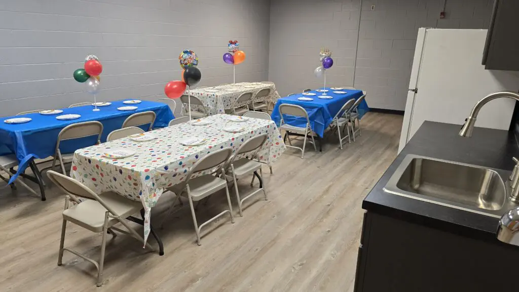 This room is perfect for birthday parties, baby showers, and other youth or adult activities.