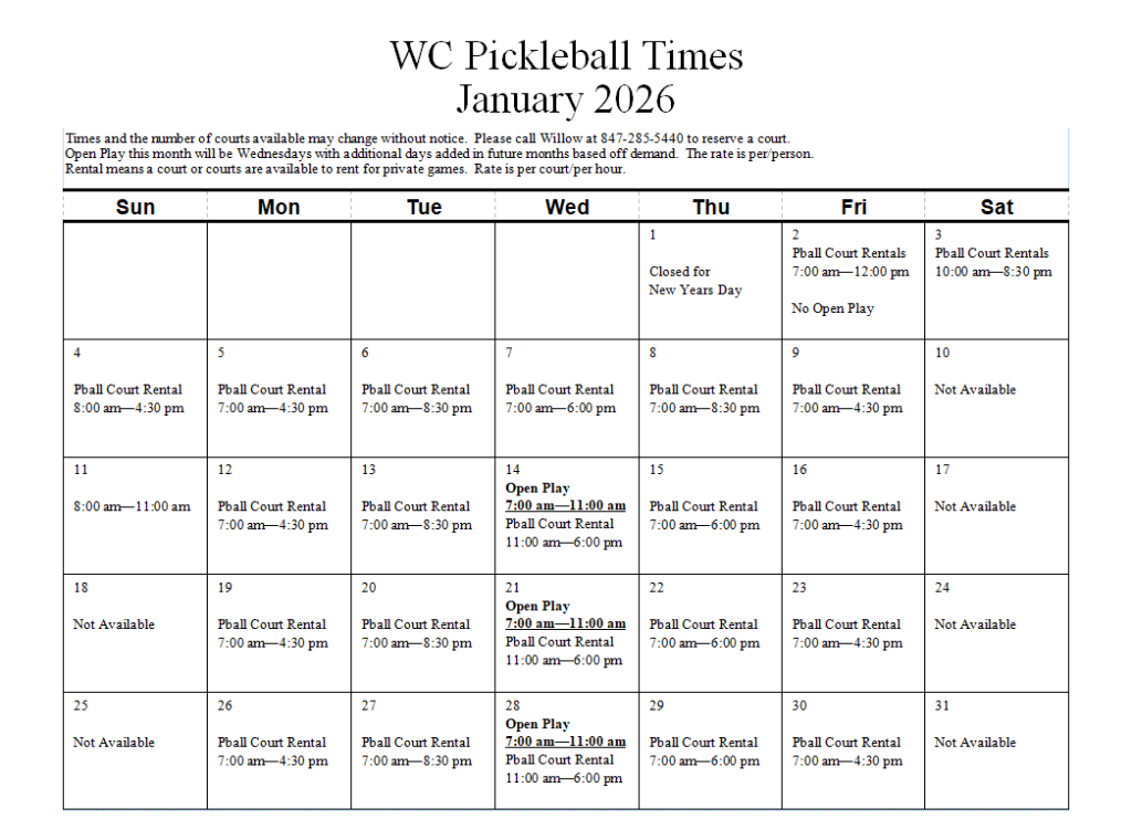 | Willow Center Facility and Fitness | Hours |